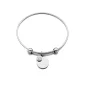 Stainless Steel stretchable bangle with round charms. 7.25" length. Gift box included. Complies with Prop 65.