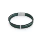Steelx triple row black and braided green leather bracelet. Length 8.5". Gift box included. Complies with Prop 65.