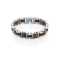 Stainless steel wood bracelet. 8.75" length (largest). Removable links. Gift box included. Complies with Prop 65.