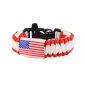 From tactical to practical, this stylish bracelet is a must have for survivalists, hikers, campers, or anyone who doesn't want to be caught unprepared in an emergency situation. Features include - approx. 10 ft of polyester tactical paracord, built-in emergency whistle, easy-release plastic buckle, makes a great event wristband. Flag pattern is available which is good gift for celebrating the land of the free. Logo can be customized . 9.5" L x 1" W