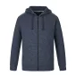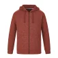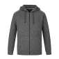 60% Cotton/40% Polyester brushed back french terry (240 gsm). Hidden under kangaroo pocket is a pocket with hook and loop closure. Adjustable drawcord in hood. Double layer self fabric cuff and hem. YKK zipper