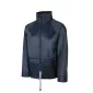 100% waterproof and windproof mad with polyester with a PVC coating. The jacket has a zipper closure, ventilation traps on the back, with openings under the arms. Features two large front cargo pockets with flap and a hood that can be rolled up into the collar. The pants carry an elastic waist with heavy duty rustproof snap on the bottom of the lower part of the legs for a better adjustment. There are two side openings for an access to the pockets.