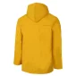 Four rustproof snaps at the front of the jacket, with one on the fly and another on the ankles of the bib. Ventilation opening at each armpit and one at the back. Features two front pockets, corduroy collar, rustproof snaps at cuffs, and a detachable hood adjustable with drawstring.