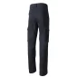 195 GSM (5.75 oz) 64% polyester / 33 % cotton / 3% spandex. Ripstop fabric. Oil and water repellent. Regular fit. Adjustable waist. Double thickness nylon reinforced knees and back. Internal knee pad pockets. Two waist pockets and two back pockets. Two cargo pockets with flap and Velcro closure. Fly at front with hook and eye closure. High resistance thread and reinforced at all points of strain.