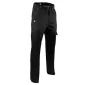 Pre-shrunk 65% polyester - 35% cotton, 7 ¾ Oz. precured. Permanent press. Features two double thickness front swing pockets, two pleated cargo pockets with flap closure and hidden buttons, and two rear pockets with hidden buttons. Has a hook and eye closure on lined waistband. The front has a brass zipper closure. High resistance thread and reinforced at all points of strain.