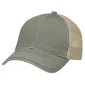 Our enzyme washed, deluxe chino twill, and soft nylon mesh cap is 6 panel, constructed, and has a full fit (mesh back) shape. Features buckram laminated front panels with pro-stitch, a pre-curved peak with 8 rows of stitching and sports a plastic adjustable back strap.