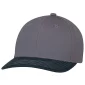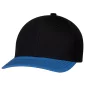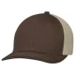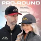 This 6 panel, constructed pro-round cap is made in a full deluxe, chino twill fabric with a slightly-curved peak with 8 rows of stitching. Features a deluxe buckram laminated front panels with pro-stitch and plastic adjustable back strap.