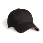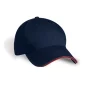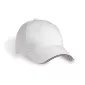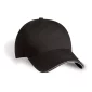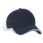 This structured cap is made of 100% cotton chino twill, with a contrasting triple sandwich peak. It is from the Prestige collection, and features 6 sections, a semi-low fit, soft-lined front, pre-curved peak, matching adjustable self back strap, and PEB with hidden Velcro system. Imported.