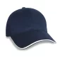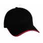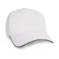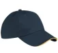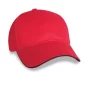 Constructed, 6 panel brushed cotton twill cap, pre-curved peak with contrast sandwich, self fabric velcro closure