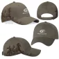 100% brushed cotton chino twill structured, mid-profile, six-panel cap. Pre-curved visor, hook-and-loop closure. Detailed embroidered wildlife scene on right side of cap, Dri Duck embossed leather patch left of back vent. MILL# 3264