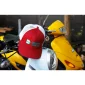 Structured front panels. Mesh back panels. 6 panel, mid profile crown. Slightly curved brim. Plastic snapback closure. One size fits most, circumference of 22"-24.4". PVC Free Product. Complies with CPSIA, Prop 65.