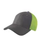 Get into the game without losing your cool. Spacer Mesh panels on the hat back allow cooling ventilation on even the warmest days. The front panel of this cap is made of 100% cotton twill and the mid and back panels are made of 100% polyester spacer mesh. This is a fitted cap.