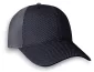 This 100% cotton twill with 100% polyester mesh, 6 section cap has a structured front, mesh overlay, pre-curved peak, and plastic back strap. Imported.