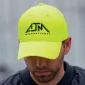 This polyester, 6 panel, constructed, full fit cap features buckram laminated front panels with Pro-stitch, a pre-curved peak with 8 rows of stitching, and a self cloth/elastic back strap with tuck-in end and Velcro closure.