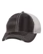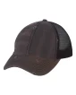 55/45 cotton/polyester twill front. Polyester mesh sides and back. Unstructured, six-panel, low-profile.Pre-curved visor with matching undervisor. Sewn eyelets. Tri-glide buckle closure