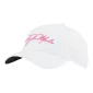 This contemporary styling includes a fresh take on the TaylorMade® logo with a flowing cursive font cleanly embroidered onto the front paneling. It delivers a traditional structured fit with adjustable sizing. It has an adjustable tuck-in back strap.