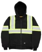 Fabric: 9 oz. polyester fleece ; Liner: 5 oz. polyester polar fleece; Orange: Fully compliant to CSA Z96-15 Class 2 Level 2 ; Black: Fully compliant to CSA Z96-15 Class 1 Level 2; Double layered three-piece hood with drawstring; Rib knit cuffs and waistband keep out the cold; Large front pockets easily store everyday items and keep hands warm; Durable nylon front zipper provides easy off and on; 2? reflective tape and X-back design help to increase visibility;