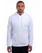 8.28 oz., 30 singles; 60% combed ringspun cotton, 40% polyester sueded French Terry fleece; Peached interior, super soft hand, medium weight; Note: The Polyester content is transitioning to Recycled Polyester. Mixed inventory may occur.; Front-face finished hood; Contrast 3/8" Back Neck Binding; Tonal drawcords; Ribbed hem and cuffs, drop shoulder; Double-stitch pouch pocket; Side seam; Tear away label; Regular fit; Butter-soft sueded face for a smooth printability and comfort; Part of the Beac