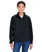 3,000 g breathability rating; 3,000 mm waterproof rating; 3.5 oz/yd² / 120 gsm, 100% polyester pongee with interior print; Roll away hood with shock cord; Center front coil zipper with nylon pull; Zippered underarm vents for breathability; Lower zippered pockets; Seam sealed with snap storm flap, adjustable cuffs and shock cord at hem for enhanced weather protection; Reflective piping details; Packable style into self pocket bag; Tear away label;