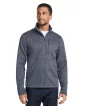 100% polyester fleece; 100 Wt Sweater fleece is cozy and warm; Flatlock seam construction allows chafe-free comfort; Zippered chest pocket for security;