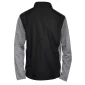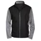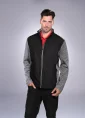 This men's jacket is made of 100% polyester bonded with 100% polyester knit jersey (3,000mm waterproofness / 1,000gm breathability), mock neck with jersey lining and self binding, textured front & back body panels. Center front technical zipper placket with reflective printed taping, jersey mélange sleeves & side panels, long sleeves with 1" turned under cuff. Asymmetrical back panels with reflective printing along panel edges. Interior seams overlocked and sewn flat, extended sport hem.