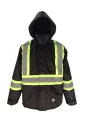 This jacket features 2" wide Vi-brance® reflective maerial in 4" wide contrasting tape that meets WCB/Worksafe/DOT configuration. The 125 gsm ThermoMAXX® insulation is good up to -30ºC/-22ºF & 150 Denier Trilobal rip-stop polyester/PU material. This jacket also features adjustable wrist cuffs with hook and loop fasteners and 2 front patch pockets. This garment is not fire retardant. Complies with ANSI, CSA, ISEA.