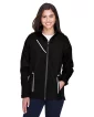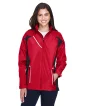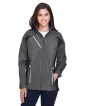 3.5 oz., 100% polyester fully seam-sealed, two-layer waterproof and breathable s; 3.2 oz, Dyed-to-match 100% polyester micro-mesh lining throughout; 6,000 mm waterproof rating and 6,000 g breathability; rollaway three-piece hood with 1?" rain bill; waterproof reverse coil zipper at center front and pockets with semi-autolock rubber pull tabs; black contrast side panels; reflective tape at right-chest and front pockets; hook and loop hem closures at cuffs; drop-tail hem and elastic shockcord pro