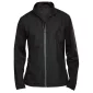 This women's jacket is made of 100% polyester bonded with 100% polyester knit jersey (3,000mm waterproofness / 1,000gm breathability), mock neck with jersey lining & self binding. Textured front & back body panels, center front technical zipper placket with reflective printed taping. Jersey mélange sleeves and side panels, long sleeves with 1" turned under cuff. Asymmetrical back panels with reflective printing along panel edges, interior seams overlocked and sewn flat, extended sport hem