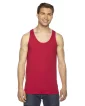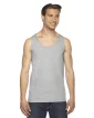 4.3 oz./yd2, 30/1's fabric; 100% combed ring-spun cotton; Heather Grey is 90% cotton/ 10% polyester; 100% cotton thread on color White; Self-fabric trim applied to neckline and armholes; 1? double-needle bottom hem; Tubular body; Tear away label; American Apparel's manufacturing process utilizes 45% renewable energy; American Apparel?, through Gildan?s Community Investment Program, supports education, the environment, humanitarian aid and active living in the communities we do business in;