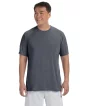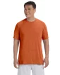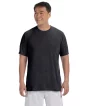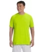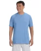 8.3 oz./lin.yd., 100% polyester jersey knit; Aqua FX ® for wicking properties; Freshcare ® for anti-microbial properties; Double-needle hemmed 5/8" sleeves and bottom hem; Rib knit 3/4" collar (no topstitch); Snag-resistant; Tear away label; Gildan's manufacturing process utilizes 45% renewable energy; Gildan?s Community Investment Program supports education, the environment, humanitarian aid and active living in the communities we do business in;