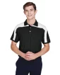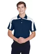 5 oz., 91% polyester, 9% spandex body; moisture-wicking and anti-microbial; cationic dyes to ensure superior brightness and excellent color fastness; athletic fit; matching flat-knit rib collar and cuffs; three-button placket with White rugby buttons; White panels construction on shoulders and sleeves;