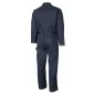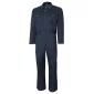 Pre-shrunk 65% polyester - 35% cotton, 7 ¾ Oz. precured. Permanent press. Features two front chest pockets, two swing pockets at the waist, two rear pockets, one tool pocket on right leg, and two side openings. It has two rustproof snap closure on collar, a two way brass zipper closure and double stitching on waistband. Cuff with rustproof snap closure. High resistance thread and reinforced at all points of strain.