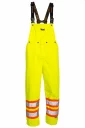 2" Vi-brance® Reflective material with a 4" contrasting tape that meets WCB/Worksafe/DOT configuration. Heavy-duty 300 denier Trilobal ripstop polyester with PU material gives superior abrasion, puncture, rip and snag resistance, and they have double sewn, taped, and heat sealed seams. 100% Waterproof and windproof. Generous sizing for comfort and added ventilation.This garment is not fire retardant. Complies with ANSI, CSA, ISEA.