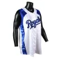 This is a sleeveless softball jersey with a racerback design. It has a full-button profile, made from pindot fabric for breathability. It's comfortable with an excellent range of motion and superior moisture management. Also available in 2-button. Custom designed and made to order.