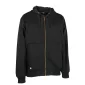 80% cotton - 20% polyester, 430 GSM. Water resistant. Regular fit. Two waist pockets. Cellphone pocket. Elastic knit cuffs. Elastic knit at the waist. Hood with adjustment drawcord. Brass front zipper.