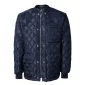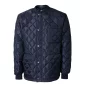 Water repellent 190T polyester - 160 GSM (4.7oz) padding. Polyester lining. Regular cut. Front zipper. Storm flap with rustproof snaps. Rib knit stretchable gussets at back. One chest pocket. Two pockets at the waist. Elastic knit collar and hand cuffs.