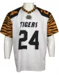 This has a similar styling to game day jerseys in a no-pad fit, with a 7 panel construction. It has a heavyweight spandex body with medium weight side panels. There's reinforced overlock stitching on all seams. Custom designed and made to order. Makes a great replica jersey, fan wear item or corporate/bar uniform.