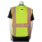 Breathable polyester mesh. Ripstop black bottom offers protection against tearing and helps hide dirt. 2" two-tone tape for optimum visibility. Black reflective trim around arm hole for added visibility and safety. Zipper closure. D-ring access. Grommets at neck for tool keepers/lanyards. Mic tabs with reinforced stitching. I.D. pocket and radio/cell pocket. 1 chest pocket with 4 pen pockets. 2 lower flap pockets. 2 internal lower pockets. 1 internal lower pen pocket. ANSI 107, Type R Class 2. 1" D x 25" W x 28" H