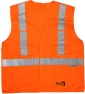 100% Waterproof, Flame Retardant, Safety Vest. Fully compliant with CSA Z96-09 Class 1 Level FR, CSGB-155.1-2001 Flame Retardant. ANSI 107-2010 Class 2 Level 2, Strong breathable FR treated premium polyester material. 2" Vi-Brance reflective tape in WCB/Worksafe configuration. 5 point Velcro tear away safety design. Safety D ring access slot on back. Extra strong edging tape. This garment is not intended as protection from hydrocarbon flash fires, electric arc hazards, or welding sparks. Complies with ANSI, ASTM, CSA, ISEA.