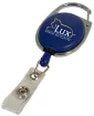 Translucent ID card holder with chromed finish features / 30" retractable cord / spring clip simply hooks onto your belt loop or bag / individual poly bag. 1 1/2" L x 4" H x 1/4" Thick