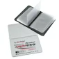 Includes 2 clear pockets and 2 frosted double sections inside. Holds up to 10 cards. Hot stamp imprint up to 8 square inches. Base price includes Black, Navy, White or Red suede vinyl. 4 1/2" W x 3" H