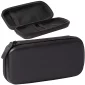 This case features soft faux leather over a rigid EVA plastic shell. There's two internal elastic mesh pockets and large pocket with hook and loop fastener closure. Complies with Prop 65. 7.5" W x 4" H x 1.5" D