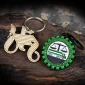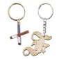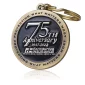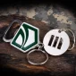 This key chain comes with a one-side design. Includes custom shape, choice of brass, nickel, copper, or black nickel finish, hand polish, and standard split ring with a jump ring. 2" L x 2" W x 2mm Thick