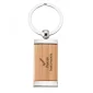 Bamboo and chrome key ring. Bamboo is a natural fiber, therefore noticeable shade variations and grain patterns may be apparent within orders of the same item. Due to our high standards of quality control, we must advise that slight irregularities in the bamboo of this item may result in imprint imperfections but are consistent with the natural look of the product. 4.1250" L x 2.0000" W x 0.5625" H
