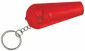 Translucent safety whistle with press-light and key holder / one button cell battery included / individual poly bag. Key ring : 1" diam, Chain : 1" long. 4 1/8" W x 1 1/8" H x 1/4" D