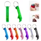 Double sided bottle opener keychain. Aluminum construction with metallic finish, includes silver split ring. 2.5625" H x 3/8" L