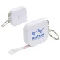 5-foot measuring tape, auto-lock and push button return, durable PVC tape, split ring key chain. Complies with Prop 65. 1.875" L x 1.875" W x 0.625" H