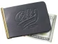 Bonded Leather, Fold, Spring Loaded, Bill Holder, Currency Keeper, Money Holder, Rounded Corner, Flap Open, Folded Cash Keeper
