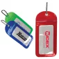 PVC water resistant pouch for small mobile devices. Metal carabiner clip at top to attach to bags and belt loops (approximately 2.625"w x 1.375"h x 0.25"d). Helps prevent your device from getting wet. Clear display window measures approximately (3"w x 6.25"h). Complies with Prop 65. 4.5" W x 9.75" H