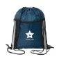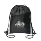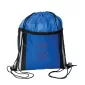 Lightweight 210D Polyester drawstring backpack has a front zippered pocket as well as reflective stripes for enhanced visibility to vehicles helping to keep the wearer safe. Rope drawstring closure to cinch the bag & use as backpack straps. Complies with Prop 65. 14" W x 17" H
